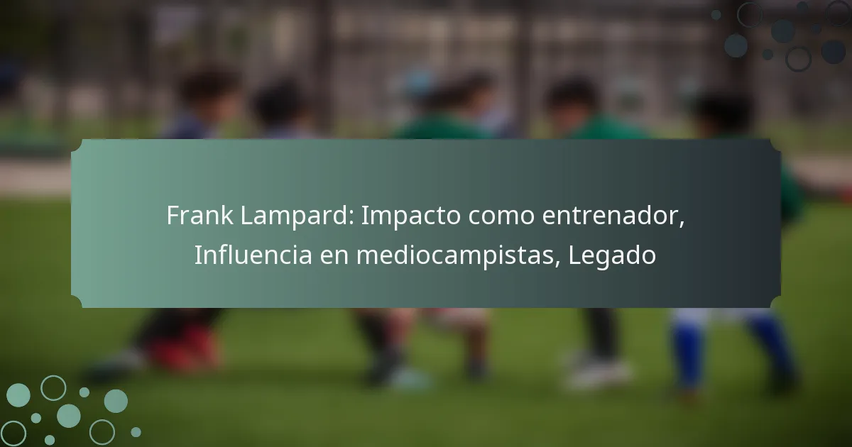 El impacto de Frank Lampard como entrenador en el fútbol es profundo, caracterizado por su dedicación al desarrollo de jugadores y la innovación táctica, particularmente en la dinámica del mediocampo. Su enfoque único ha transformado el papel de los mediocampistas modernos, enfatizando la anotación de goles y la versatilidad, mientras su legado como jugador y entrenador continúa influyendo en las futuras generaciones en el deporte.